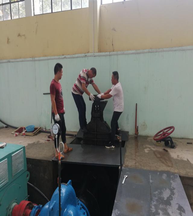即便時至夜晚,泵房的溫度也讓人感到悶熱難耐,大汗淋漓,但維修師傅們?nèi)徊活欉@些,聚精會神地專注于手上的工作,齊心協(xié)力,連續(xù)奮戰(zhàn),終于在第二天凌晨三點(diǎn)左右維修完畢。待一切設(shè)備正常運(yùn)行后,已是凌晨5點(diǎn)了,天已蒙蒙亮,但大家并不感到疲憊,而是有一種搶修勝利后的喜悅從心底油然而生,因為大家的努力付出,確保了襄城居民的正常用水,辛苦也值了!