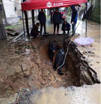 為了盡快完成管道修復(fù)工作,及時(shí)恢復(fù)供水,搶修隊(duì)在現(xiàn)場(chǎng)制定搶修方案,組織搶修人員關(guān)閉閥門、開挖路面,并根據(jù)經(jīng)驗(yàn)迅速調(diào)集搶修工具和物品,做好材料的準(zhǔn)備工作。雖然天空下著大雨,給搶修工作帶來(lái)了不便,但搶修人員不畏辛苦,加班加點(diǎn),冒著大雨依然緊張有序地開展著搶修工作,從白天奮戰(zhàn)到天黑,經(jīng)過8個(gè)小時(shí)的奮力搶修,供水管道故障全面排除,于晚上19點(diǎn)20分恢復(fù)了正常供水。