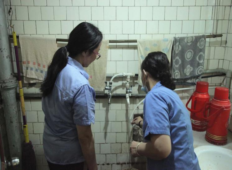 為深入貫徹落實(shí)“我為群眾辦實(shí)事”的要求,把好水質(zhì)“安全關(guān)”,打消市民心中的疑問,水質(zhì)檢測(cè)中心的“水質(zhì)衛(wèi)士”們?cè)谧龊萌粘z測(cè)工作的同時(shí),在中心主任吳非、書記劉霞的帶領(lǐng)下于16日下午走進(jìn)小區(qū),敲開用戶家門,深入市民家中為市民現(xiàn)場(chǎng)檢測(cè)“龍頭水”水質(zhì)。每家檢測(cè)完畢,還為用戶講解渾濁度國(guó)家標(biāo)準(zhǔn)的限制是多少,現(xiàn)場(chǎng)檢測(cè)的是多少。