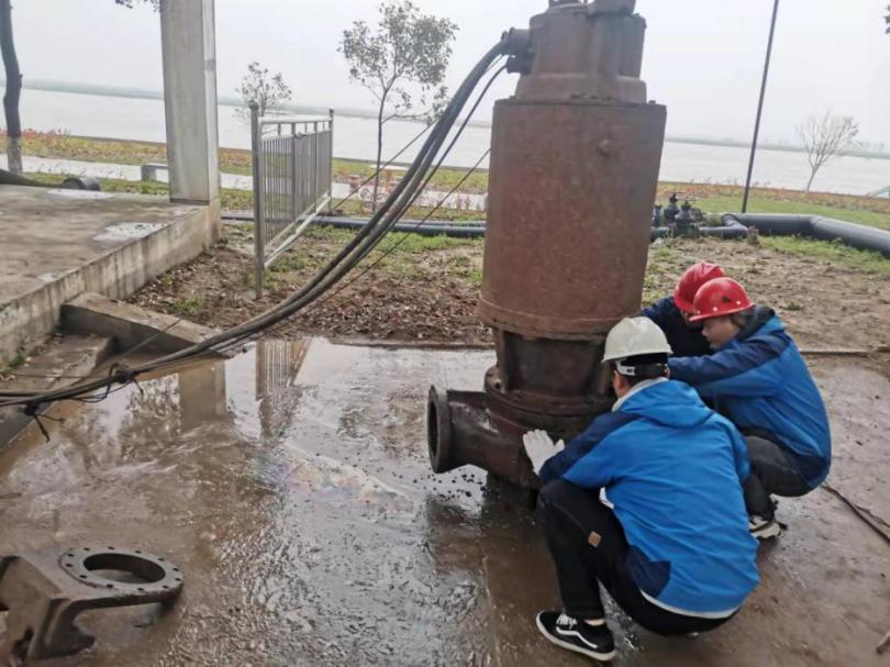 4月6日,宜城天河供水公司水廠按崗位標(biāo)準(zhǔn)化管理要求對(duì)取水車(chē)間南側(cè)沉井潛泵進(jìn)行了月度檢查維護(hù),檢查時(shí)發(fā)現(xiàn)4#潛泵在運(yùn)行時(shí)會(huì)偶爾發(fā)出‘叮咚’撞擊聲,再觀察4#取水潛泵控制柜電流、電壓、流量正常后,機(jī)修人員初步判斷4#潛泵進(jìn)水口周?chē)赡苡挟愇铩?