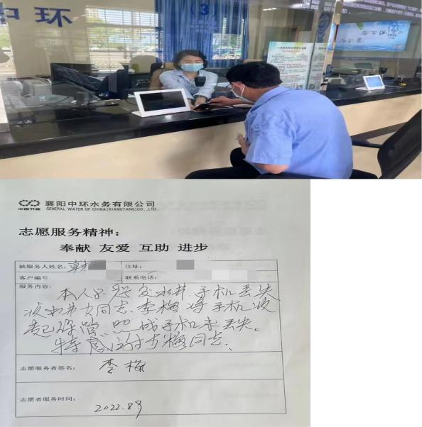 8月9日上午8時(shí)40分,用戶(hù)韓先生來(lái)春園路大廳辦理低保用戶(hù)優(yōu)惠業(yè)務(wù),離開(kāi)時(shí)不小心把手機(jī)遺落在3號(hào)窗口,收銀員李梅同志發(fā)現(xiàn)后立即報(bào)告大廳主管并主動(dòng)保管好手機(jī)。上午11時(shí)30分,該用戶(hù)汗流浹背的來(lái)到大廳,著急地詢(xún)問(wèn)是否有人拾到手機(jī),李梅同志在核實(shí)此是手機(jī)失主后,即刻將手機(jī)交還給該用戶(hù)。用戶(hù)以“非常滿(mǎn)意”的高度好評(píng)來(lái)表示對(duì)李梅同志拾金不昧精神的贊賞。