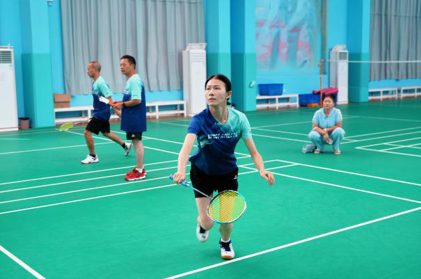羽毛球場上,健兒們身手矯健、揮汗如雨,展現(xiàn)了高超的技藝和頑強的拼搏精神。